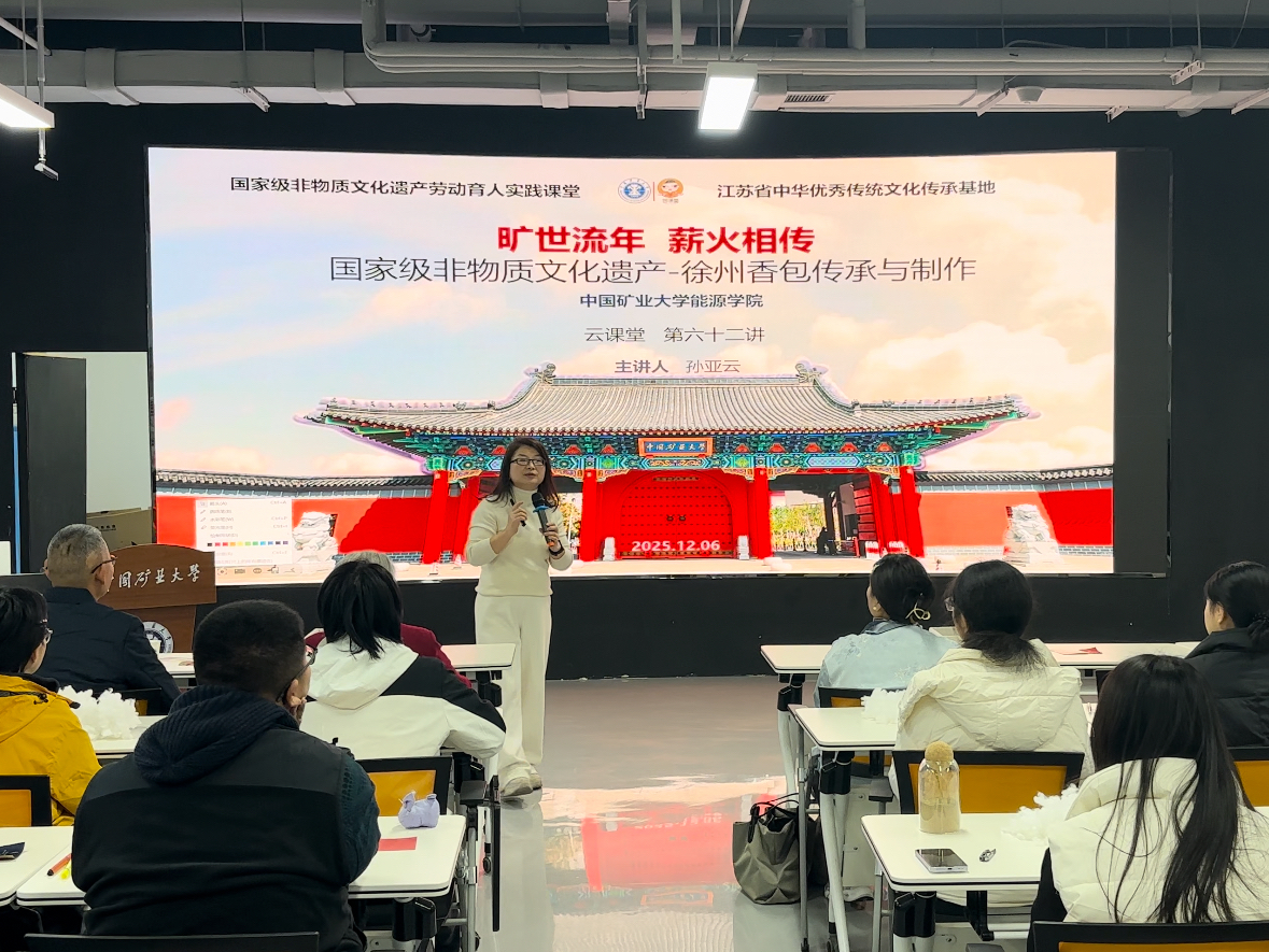 12月6日下午,我院在力行楼107教室举办了“旷世流年 薪火相传”徐州香包传承与制作主题活动。本次活动特邀国家级非物质文化遗产徐州香包传承人王秀英女士与我校孙亚云教授现场指导,由教务部副部长、能源学院副院长周来主持,2025级本博贯通学生共同参与。