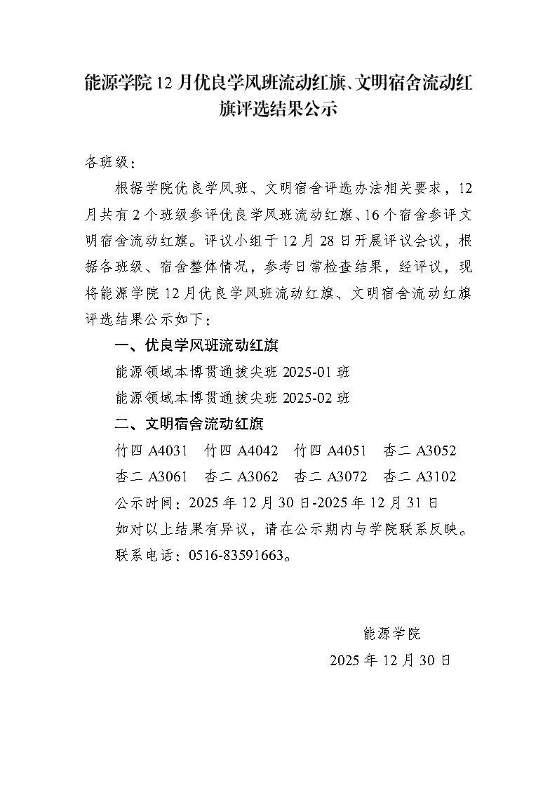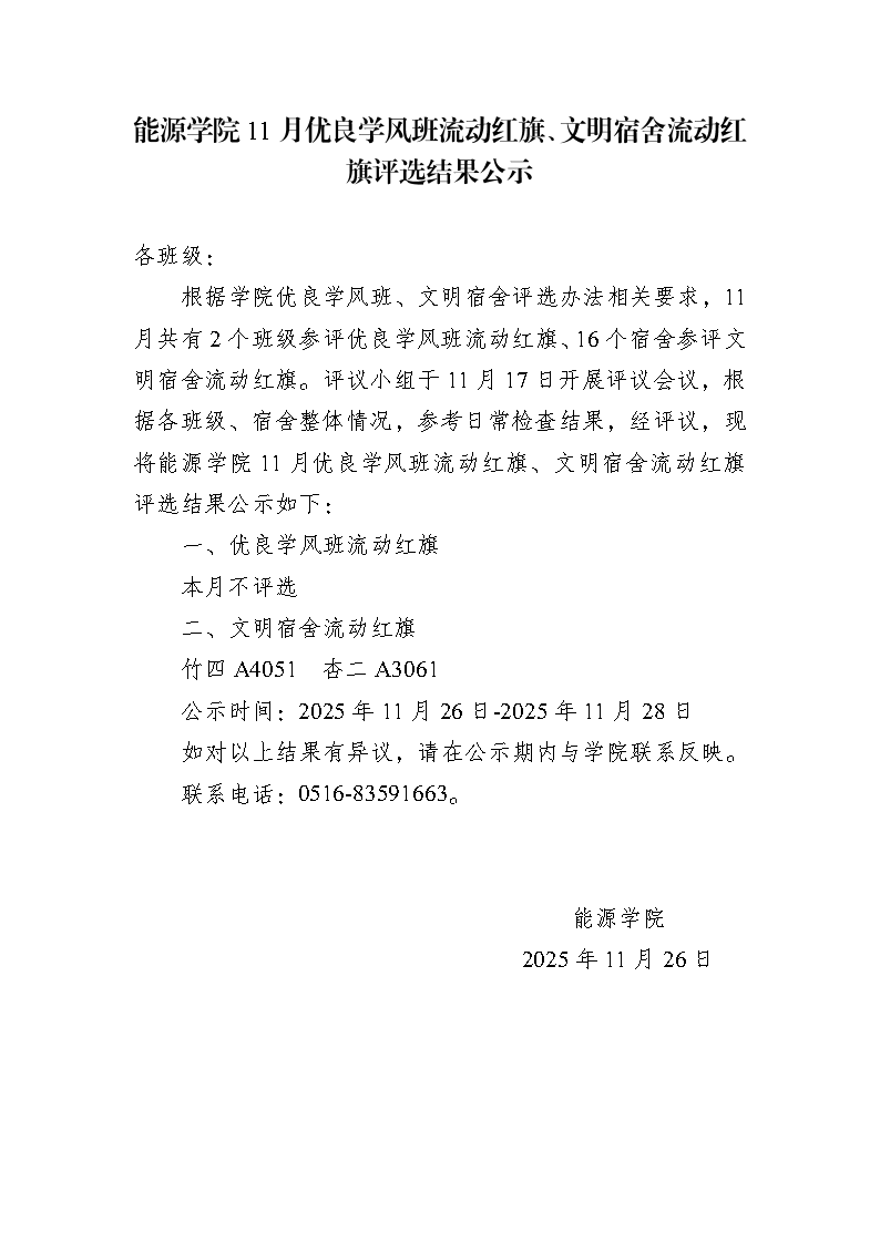 下一步,能源学院将把优良学风班、文明宿舍评选作为学风建设的常态化抓手。通过展示标杆集体风采、开展经验交流分享、建立动态考核机制等方式,持续巩固创建成果,推动学风建设走深走实。